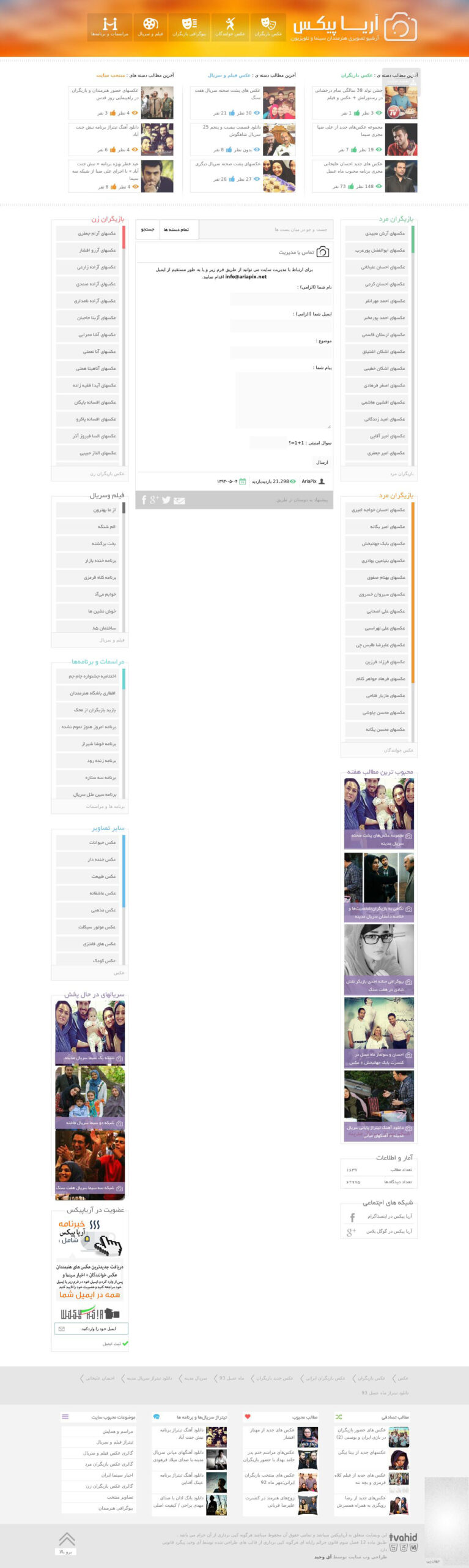 سایت آریا پیکس شامل آرشیو بزرگی از هنرمندان ، بازیگران ایران و خوانندگان